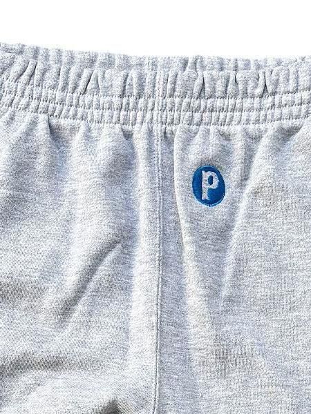右太もも裏付近にオリジナルのグラフィックが入り、フロントウエスト付近に「P」の刺繍ワッペンが付きデザインのアクセントに。