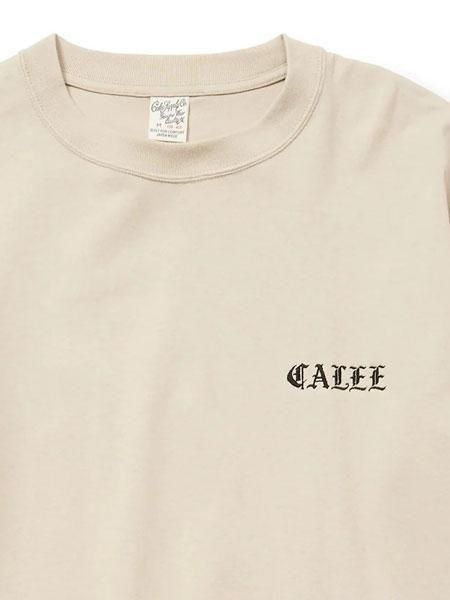 "ラスト1点" 【 CALEE 】 VINTAGE TYPE EMBROIDERY L/S TEE ( L/S ドロップショルダー Tシャツ ) Beige