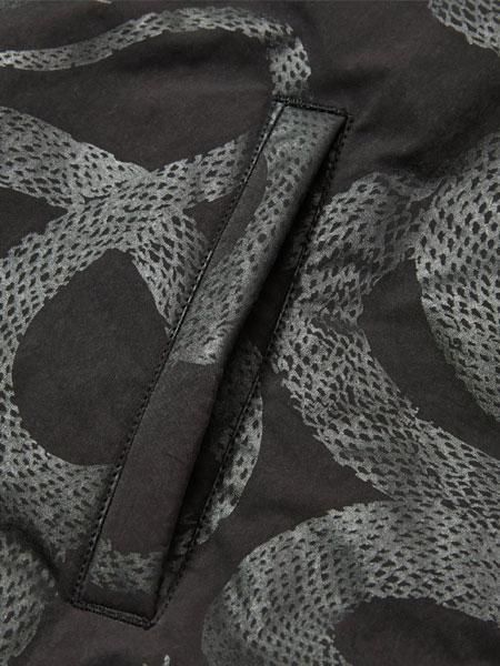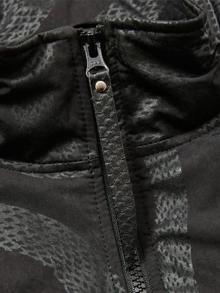 スネーク柄をプリントしたライトミリクロスを採用。