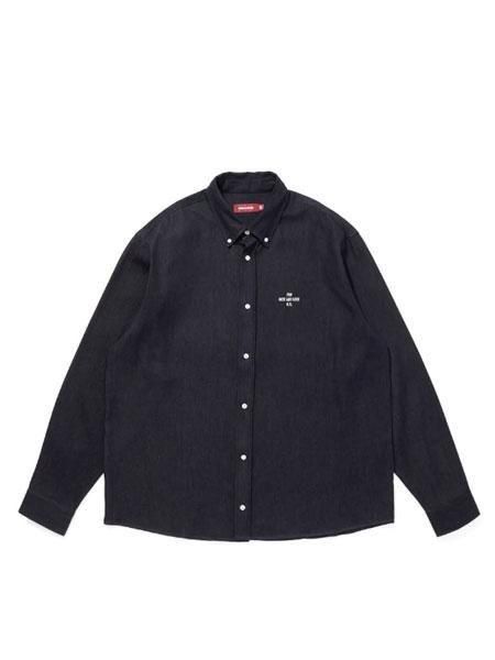 ライトオンスのデニム生地で作製されたボタンダウンシャツ。